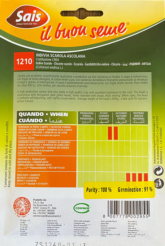 Discover the perfect bitter greens with our Escarole and Endive varieties, available as open-pollinated heirloom seeds imported directly from Franchi Sementi in Italy. These premium seeds are perfect for growing authentic Italian bitter greens in your garden. Buy online and enjoy the rich flavors of Escarole and Endive, two versatile varieties of escarole lettuce vegetable seeds, all available for customers in the United States, and beyond. Whether you're a seasoned gardener or just getting started, these Italian seeds are your gateway to growing fresh, high-quality greens. Grow Italian in your own backyard and elevate your garden with the best seeds from Italy.