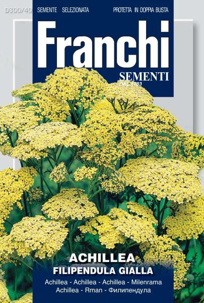 Achillea filipendulina, fernleaf yarrow. Perennial to USDA Zone 3, Achillea has yellow flowers on stems to 4 feet tall and ferny, silvery foliage. Great for cutting, drying, landscaping. Blooms in early summer the second year.