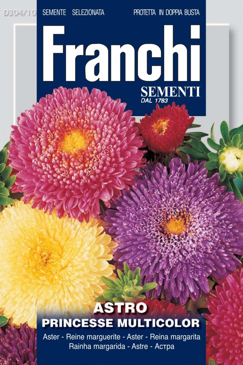 Aster - Princess Multicolor Mix. Annual. Full sun/partial shade. Grows 20 inches tall. Upright but compact. Produces a lot of flowers. Good for flowerbeds and cut flowers. Start indoors 6-8 weeks before last frost date; sow 2-3 seeds per cell, 1/4 inch deep, and thin to one. Can direct seed, 2-3 seeds every 12 inches and thin to one. 2 gram packet.