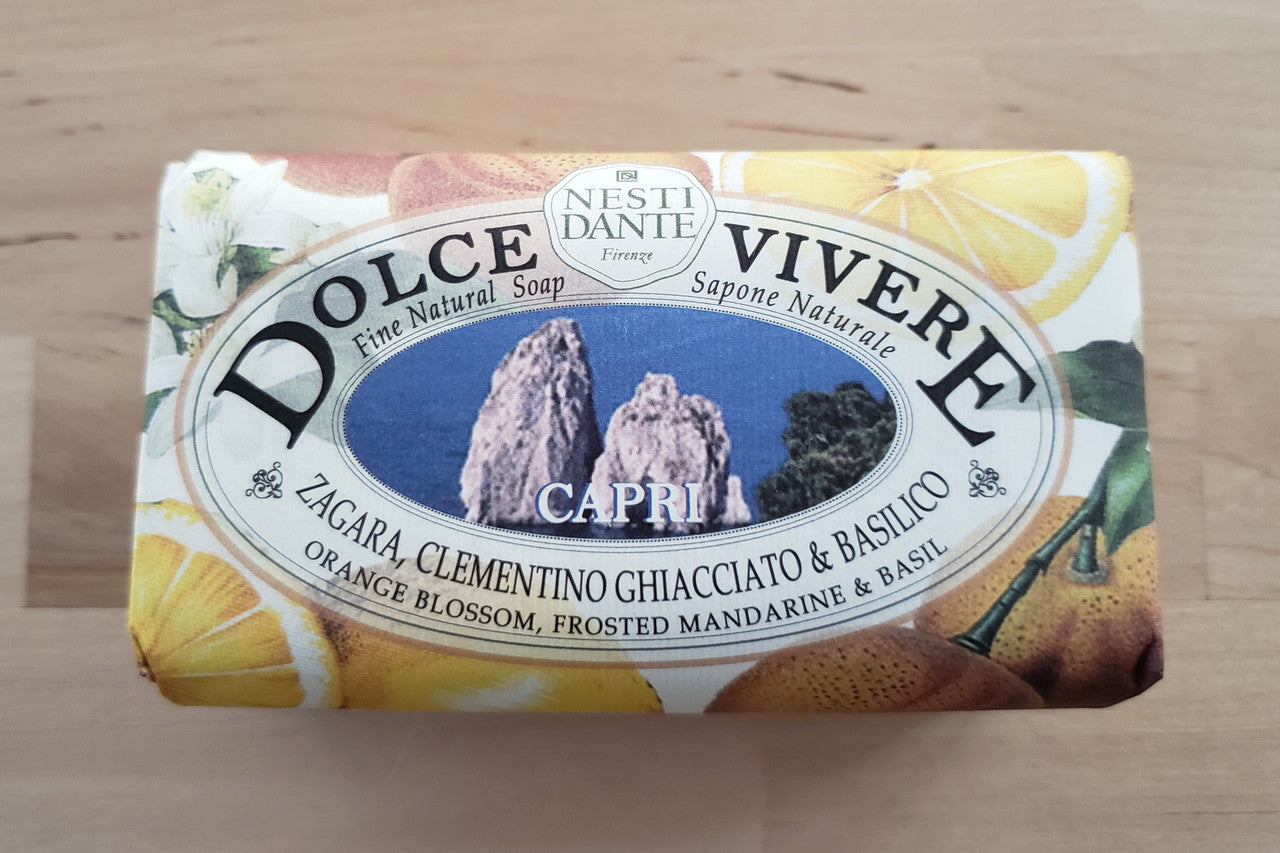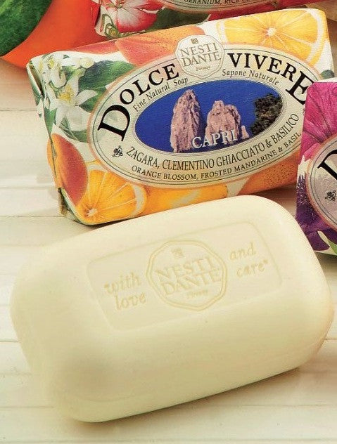 The frozen freshness of Basil and Mandarine juice, together with the intense Mediterranean touch of Orange Blossom, reveal enchanting feelings of pleasure and harmony. With a surprising and unique fragrance, this Nesti Dante soap captures the charm and romance of the myth, the legend, the art and the passion of Capri.