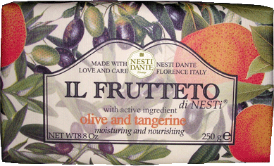 One of six fragrances in the Il Frutteto line of natural soaps, Olive & Tangerine has protective and nourishing properties and a crisp, citrusy fragrance.
