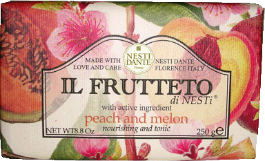 One of six fragrances in the Il Frutteto line of natural soaps, Peach & Melon has toning, softening, and moisturizing virtues with a sweet fragrance.