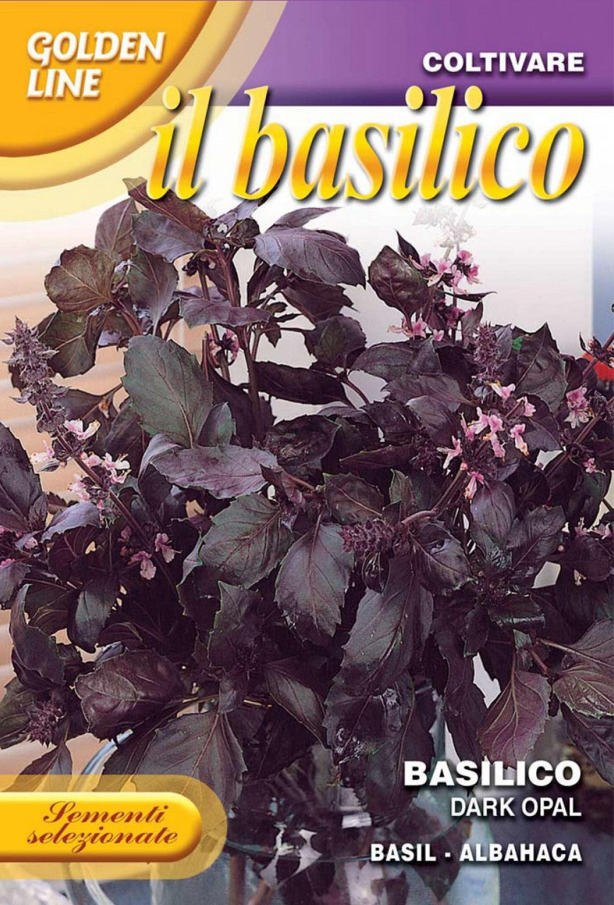 Violetto Aromatico / Dark Opal basil. This is a really pretty basil. Nice color, good size plant similar in size and growth habit to Genovese basil. Good aroma and flavor. Will do ok in a pot, but does better outside in the garden. Consider using it as a decorative plant in place of flowers. A bed of red basil, Genovese basil and lettuce leaf basil is quite pretty. For transplants, start 6-7 weeks before set out date (10 days after last frost date), 5-6 seeds/cell and thin to two or three. Plant at 12 inch intervals. For direct seed, 6-7 seeds every 12 inches cover with 1/4 inch fine soil and keep watered until germination: 7-10 days. Thin to 2-3 plants per space.
