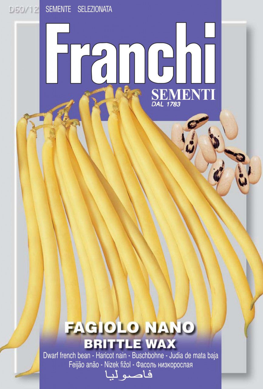 Bean Brittle Beurre/Wax. Golden Yellow bush French type. Sweet & crisp. Good production. 55-60 days. Cook with olive oil, aioli & toasted bread crumbs. 45 gram packet. 225-275 seeds.