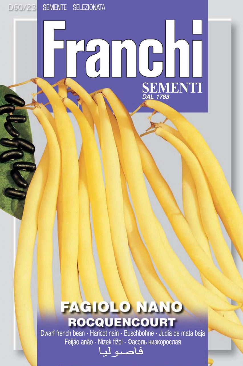 Bean Rocquencourt. Yellow bush French bean named for the farming village of Rocquencourt near Versailles in France. It has been grown commercially since at least the 1930s and it remains popular throughout Europe. It has a smooth, buttery taste and stays crisp when cooked. It is unequaled for fresh eating and cooking, and the black seeds can be used as dried beans. Starts to produce in 55 days or less. Pick when no thicker than a pencil for best taste and productivity. The more you pick, the more it will produce. Compared to Brittle Beurre, Rocquencourt is a bit longer and slimmer and has a much more orange color.