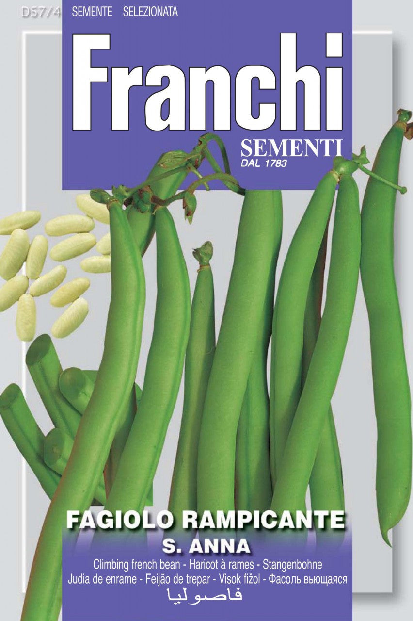 Santa Anna. Deep green pole French type bean. Excellent taste. Pick when no thicker than a pencil. Good producer over a long period; keep picked to encourage continued production. Plant after soil has warmed up well (a week or so before setting out tomatoes. Use trellis, poles or tripod. Plant 4-5 seeds around each pole or two for each string, thin to 2-3 for poles, 1-2 for strings. For trellis, two seeds every six inches, thin to one. 35 grams. Approx. 40 seeds. Pole beans have approximately 1 seed per gram.