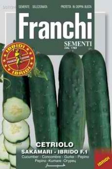 Cucumber "Sakamari Ibrido F.1". Mid-Early Japanese Variety This variety produces dark green cylindrical fruits with very few spines and an intense flavor. Vigorous plant with tightly packed leaves. Resistant to cracking. Open air cross pollinated hybrid.
