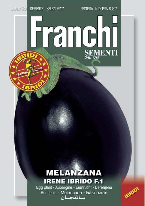 Hybrid. Big plant, mid-early, productive. Large, shiny, purple, traditional-shaped fruit that are 5 inches across and 6-7 inches long. Great flavor. 0.2 gram packet, approximately 30-40 seeds. Approximately 200-250 per gram.