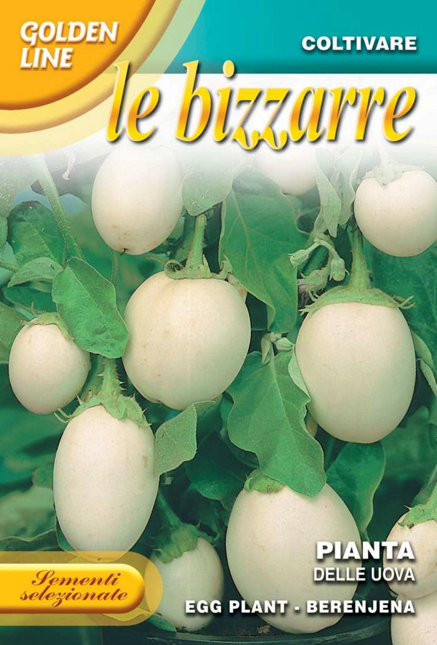 White egg-shaped eggplant. Bushy plant 2-3 feet across. Best flavor when picked about the size of a jumbo egg. Taste and texture described as mushroom-like. Set out 8-9 week-old plants two weeks after final frost. 0.75 gram packet, approximately 150 seeds. Approximately 200-250 per gram.