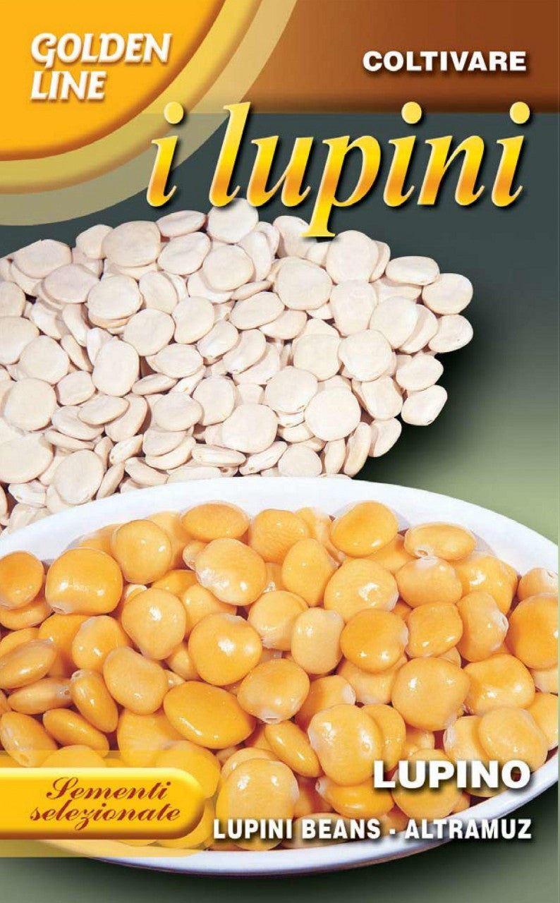 Lupini. A mid-early dwarf plant about 18" high. Plant 3/4" deep every 2", rows 18" apart, after last frost. Thin to 1' between plants. Plants require a steady supply of water. Produces numerous pods which mature in stages from the bottom branches up. Havest as the flowers die. The beans are versatile in the kitchen and are excellent in stews and soups. Often sold in brine jars, and eaten like edamame. We do have a detailed processing guide for Lupini, which you can see here. If you would like us to send you a paper copy of the guide with your order, please tell us so in the "order comments" box at checkout. 100 gram (3.5 oz.) box.