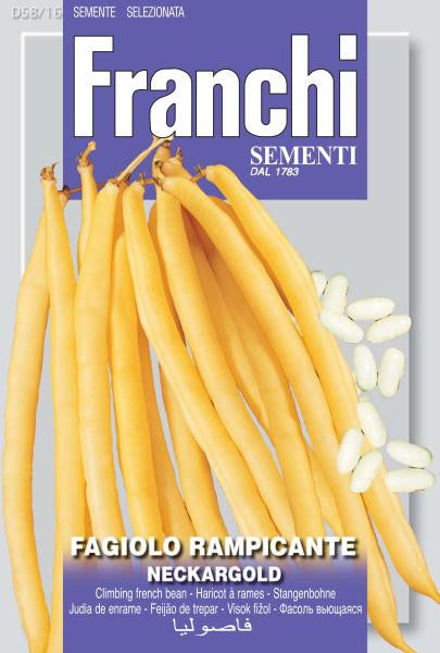 Neckargold Pole Bean. Climbing stringless yellow French bean with straight pod. 30 grams. 30-40 seeds.