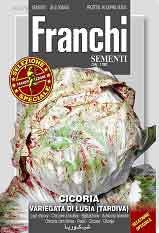 Radicchio di Lusia Tardiva. Special selection. Not for spring planting. Heading chicory makes a nice round ball. Light green & white leaves with red markings. White stems. Very fancy type. Nice taste, raw or cooked. 100 plus days. 4 gram packet. Approximately 600-900 seeds per gram.